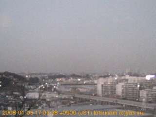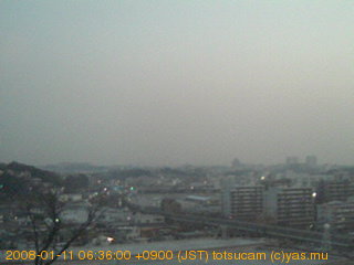 横浜市戸塚駅周辺から 東戸塚方面(北北東)を望む展望カメラの映像です。 左は現在の映像です。 下に並んでいるのは、 7日間に亘る日の出どき、昼間、夕暮れどきの写真(サムネイル)です。 それぞれ、日の出15分前、南中時、日没20分後の写真となっています。 各写真の下にはmpeg形式の動画へのリンクがあります。 それぞれ、日の出、南中、日没の前後1時間の画像です。 右欄にはその日24時間の動画へのリンクがあります。 この7日間以外は日付が一覧表示されています。 日付部分をクリックすると、 その日付から7日分が展開されて表示されます。