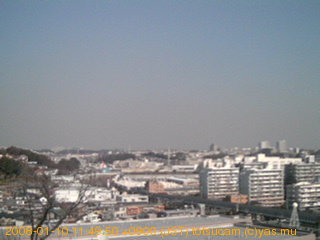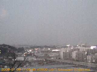 適度に曇った日の雲の動き (例: 2005-10-24) がとても楽しめます。 正面を横切っている高架は横須賀線下りです。 その下に横須賀線上り、東海道線、同貨物線が走っていますが、 高架に隠れていてよく見えません。 夜間は特に中央左寄りの車の動きがよく見えます。