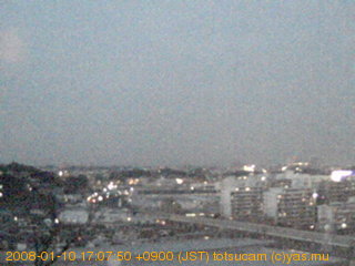 横浜市戸塚駅周辺から 東戸塚方面(北北東)を望む展望カメラの映像です。 左は現在の映像です。 下に並んでいるのは、 7日間に亘る日の出どき、昼間、夕暮れどきの写真(サムネイル)です。 それぞれ、日の出15分前、南中時、日没20分後の写真となっています。 各写真の下にはmpeg形式の動画へのリンクがあります。 それぞれ、日の出、南中、日没の前後1時間の画像です。 右欄にはその日24時間の動画へのリンクがあります。 この7日間以外は日付が一覧表示されています。 日付部分をクリックすると、 その日付から7日分が展開されて表示されます。