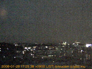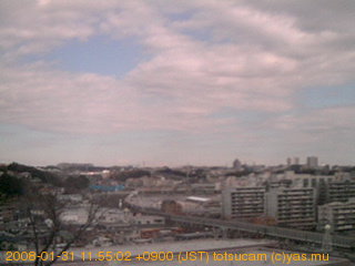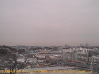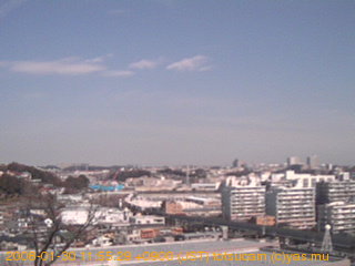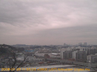 適度に曇った日の雲の動き (例: 2005-10-24) がとても楽しめます。 正面を横切っている高架は横須賀線下りです。 その下に横須賀線上り、東海道線、同貨物線が走っていますが、 高架に隠れていてよく見えません。 夜間は特に中央左寄りの車の動きがよく見えます。