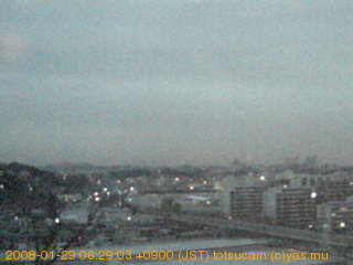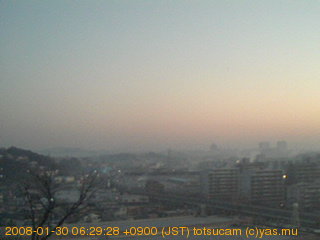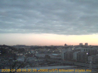 横浜市戸塚駅周辺から 東戸塚方面(北北東)を望む展望カメラの映像です。 左は現在の映像です。 下に並んでいるのは、 7日間に亘る日の出どき、昼間、夕暮れどきの写真(サムネイル)です。 それぞれ、日の出15分前、南中時、日没20分後の写真となっています。 各写真の下にはmpeg形式の動画へのリンクがあります。 それぞれ、日の出、南中、日没の前後1時間の画像です。 右欄にはその日24時間の動画へのリンクがあります。 この7日間以外は日付が一覧表示されています。 日付部分をクリックすると、 その日付から7日分が展開されて表示されます。