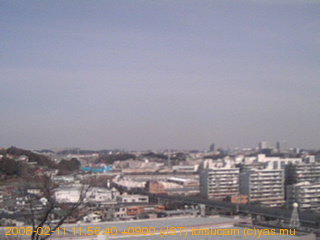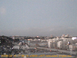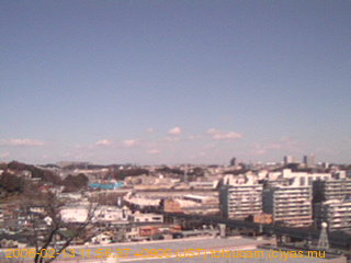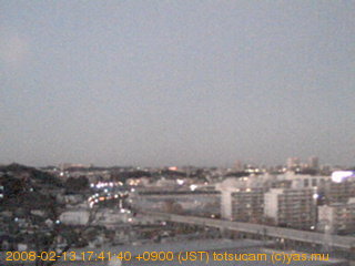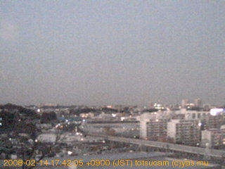 適度に曇った日の雲の動き (例: 2005-10-24) がとても楽しめます。 正面を横切っている高架は横須賀線下りです。 その下に横須賀線上り、東海道線、同貨物線が走っていますが、 高架に隠れていてよく見えません。 夜間は特に中央左寄りの車の動きがよく見えます。