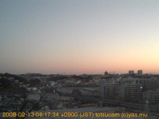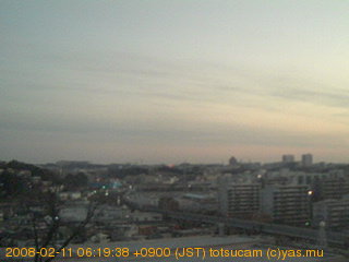 横浜市戸塚駅周辺から 東戸塚方面(北北東)を望む展望カメラの映像です。 左は現在の映像です。 下に並んでいるのは、 7日間に亘る日の出どき、昼間、夕暮れどきの写真(サムネイル)です。 それぞれ、日の出15分前、南中時、日没20分後の写真となっています。 各写真の下にはmpeg形式の動画へのリンクがあります。 それぞれ、日の出、南中、日没の前後1時間の画像です。 右欄にはその日24時間の動画へのリンクがあります。 この7日間以外は日付が一覧表示されています。 日付部分をクリックすると、 その日付から7日分が展開されて表示されます。