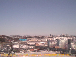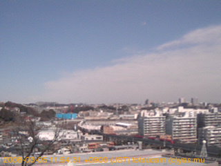 適度に曇った日の雲の動き (例: 2005-10-24) がとても楽しめます。 正面を横切っている高架は横須賀線下りです。 その下に横須賀線上り、東海道線、同貨物線が走っていますが、 高架に隠れていてよく見えません。 夜間は特に中央左寄りの車の動きがよく見えます。