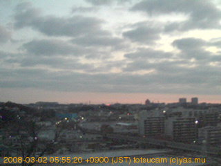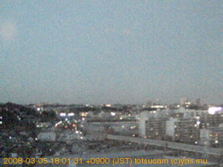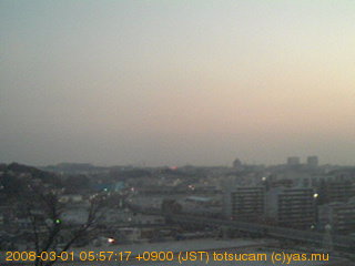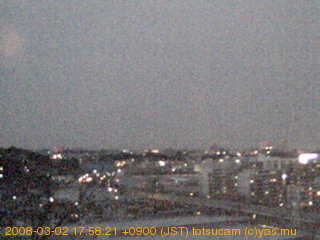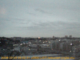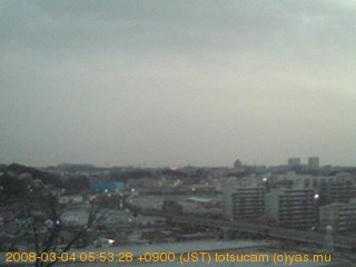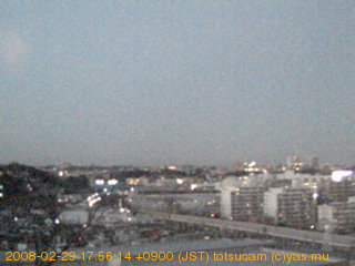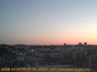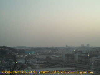 横浜市戸塚駅周辺から 東戸塚方面(北北東)を望む展望カメラの映像です。 左は現在の映像です。 下に並んでいるのは、 7日間に亘る日の出どき、昼間、夕暮れどきの写真(サムネイル)です。 それぞれ、日の出15分前、南中時、日没20分後の写真となっています。 各写真の下にはmpeg形式の動画へのリンクがあります。 それぞれ、日の出、南中、日没の前後1時間の画像です。 右欄にはその日24時間の動画へのリンクがあります。 この7日間以外は日付が一覧表示されています。 日付部分をクリックすると、 その日付から7日分が展開されて表示されます。