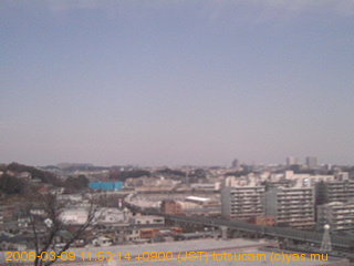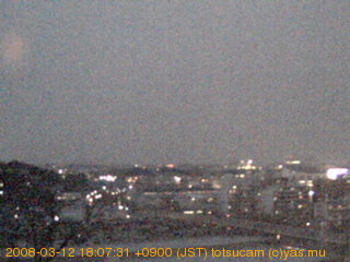 適度に曇った日の雲の動き (例: 2005-10-24) がとても楽しめます。 正面を横切っている高架は横須賀線下りです。 その下に横須賀線上り、東海道線、同貨物線が走っていますが、 高架に隠れていてよく見えません。 夜間は特に中央左寄りの車の動きがよく見えます。