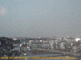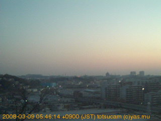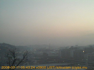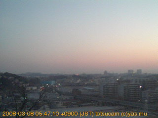 横浜市戸塚駅周辺から 東戸塚方面(北北東)を望む展望カメラの映像です。 左は現在の映像です。 下に並んでいるのは、 7日間に亘る日の出どき、昼間、夕暮れどきの写真(サムネイル)です。 それぞれ、日の出15分前、南中時、日没20分後の写真となっています。 各写真の下にはmpeg形式の動画へのリンクがあります。 それぞれ、日の出、南中、日没の前後1時間の画像です。 右欄にはその日24時間の動画へのリンクがあります。 この7日間以外は日付が一覧表示されています。 日付部分をクリックすると、 その日付から7日分が展開されて表示されます。