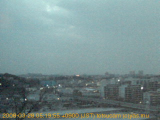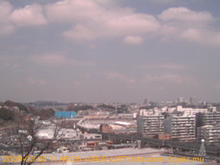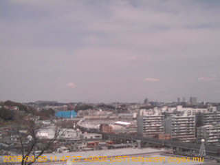 適度に曇った日の雲の動き (例: 2005-10-24) がとても楽しめます。 正面を横切っている高架は横須賀線下りです。 その下に横須賀線上り、東海道線、同貨物線が走っていますが、 高架に隠れていてよく見えません。 夜間は特に中央左寄りの車の動きがよく見えます。