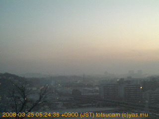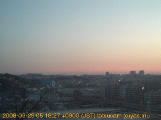 横浜市戸塚駅周辺から 東戸塚方面(北北東)を望む展望カメラの映像です。 左は現在の映像です。 下に並んでいるのは、 7日間に亘る日の出どき、昼間、夕暮れどきの写真(サムネイル)です。 それぞれ、日の出15分前、南中時、日没20分後の写真となっています。 各写真の下にはmpeg形式の動画へのリンクがあります。 それぞれ、日の出、南中、日没の前後1時間の画像です。 右欄にはその日24時間の動画へのリンクがあります。 この7日間以外は日付が一覧表示されています。 日付部分をクリックすると、 その日付から7日分が展開されて表示されます。