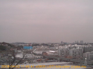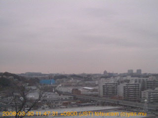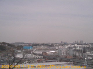 適度に曇った日の雲の動き (例: 2005-10-24) がとても楽しめます。 正面を横切っている高架は横須賀線下りです。 その下に横須賀線上り、東海道線、同貨物線が走っていますが、 高架に隠れていてよく見えません。 夜間は特に中央左寄りの車の動きがよく見えます。