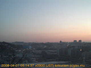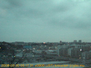 横浜市戸塚駅周辺から 東戸塚方面(北北東)を望む展望カメラの映像です。 左は現在の映像です。 下に並んでいるのは、 7日間に亘る日の出どき、昼間、夕暮れどきの写真(サムネイル)です。 それぞれ、日の出15分前、南中時、日没20分後の写真となっています。 各写真の下にはmpeg形式の動画へのリンクがあります。 それぞれ、日の出、南中、日没の前後1時間の画像です。 右欄にはその日24時間の動画へのリンクがあります。 この7日間以外は日付が一覧表示されています。 日付部分をクリックすると、 その日付から7日分が展開されて表示されます。