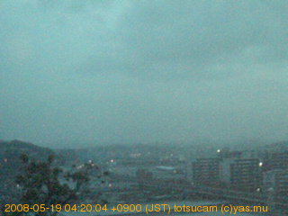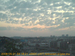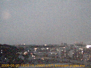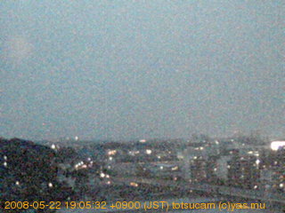 横浜市戸塚駅周辺から 東戸塚方面(北北東)を望む展望カメラの映像です。 左は現在の映像です。 下に並んでいるのは、 7日間に亘る日の出どき、昼間、夕暮れどきの写真(サムネイル)です。 それぞれ、日の出15分前、南中時、日没20分後の写真となっています。 各写真の下にはmpeg形式の動画へのリンクがあります。 それぞれ、日の出、南中、日没の前後1時間の画像です。 右欄にはその日24時間の動画へのリンクがあります。 この7日間以外は日付が一覧表示されています。 日付部分をクリックすると、 その日付から7日分が展開されて表示されます。