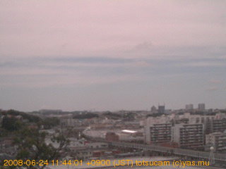 適度に曇った日の雲の動き (例: 2005-10-24) がとても楽しめます。 正面を横切っている高架は横須賀線下りです。 その下に横須賀線上り、東海道線、同貨物線が走っていますが、 高架に隠れていてよく見えません。 夜間は特に中央左寄りの車の動きがよく見えます。