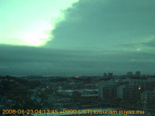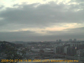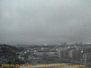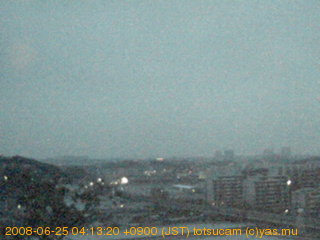 横浜市戸塚駅周辺から 東戸塚方面(北北東)を望む展望カメラの映像です。 左は現在の映像です。 下に並んでいるのは、 7日間に亘る日の出どき、昼間、夕暮れどきの写真(サムネイル)です。 それぞれ、日の出15分前、南中時、日没20分後の写真となっています。 各写真の下にはmpeg形式の動画へのリンクがあります。 それぞれ、日の出、南中、日没の前後1時間の画像です。 右欄にはその日24時間の動画へのリンクがあります。 この7日間以外は日付が一覧表示されています。 日付部分をクリックすると、 その日付から7日分が展開されて表示されます。