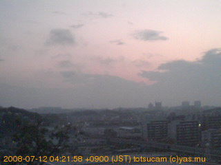 横浜市戸塚駅周辺から 東戸塚方面(北北東)を望む展望カメラの映像です。 左は現在の映像です。 下に並んでいるのは、 7日間に亘る日の出どき、昼間、夕暮れどきの写真(サムネイル)です。 それぞれ、日の出15分前、南中時、日没20分後の写真となっています。 各写真の下にはmpeg形式の動画へのリンクがあります。 それぞれ、日の出、南中、日没の前後1時間の画像です。 右欄にはその日24時間の動画へのリンクがあります。 この7日間以外は日付が一覧表示されています。 日付部分をクリックすると、 その日付から7日分が展開されて表示されます。