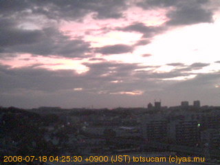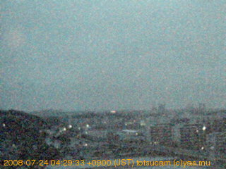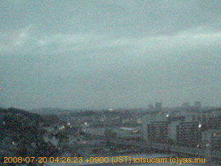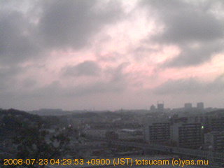 横浜市戸塚駅周辺から 東戸塚方面(北北東)を望む展望カメラの映像です。 左は現在の映像です。 下に並んでいるのは、 7日間に亘る日の出どき、昼間、夕暮れどきの写真(サムネイル)です。 それぞれ、日の出15分前、南中時、日没20分後の写真となっています。 各写真の下にはmpeg形式の動画へのリンクがあります。 それぞれ、日の出、南中、日没の前後1時間の画像です。 右欄にはその日24時間の動画へのリンクがあります。 この7日間以外は日付が一覧表示されています。 日付部分をクリックすると、 その日付から7日分が展開されて表示されます。