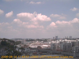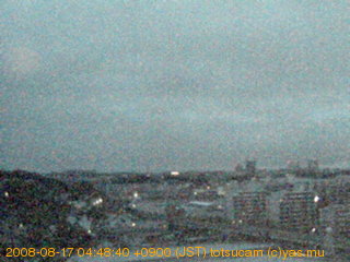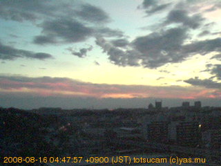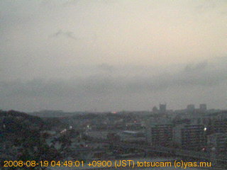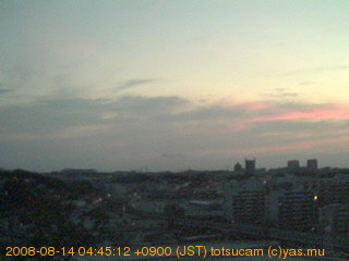 横浜市戸塚駅周辺から 東戸塚方面(北北東)を望む展望カメラの映像です。 左は現在の映像です。 下に並んでいるのは、 7日間に亘る日の出どき、昼間、夕暮れどきの写真(サムネイル)です。 それぞれ、日の出15分前、南中時、日没20分後の写真となっています。 各写真の下にはmpeg形式の動画へのリンクがあります。 それぞれ、日の出、南中、日没の前後1時間の画像です。 右欄にはその日24時間の動画へのリンクがあります。 この7日間以外は日付が一覧表示されています。 日付部分をクリックすると、 その日付から7日分が展開されて表示されます。