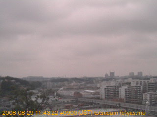 適度に曇った日の雲の動き (例: 2005-10-24) がとても楽しめます。 正面を横切っている高架は横須賀線下りです。 その下に横須賀線上り、東海道線、同貨物線が走っていますが、 高架に隠れていてよく見えません。 夜間は特に中央左寄りの車の動きがよく見えます。