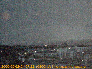 横浜市戸塚駅周辺から 東戸塚方面(北北東)を望む展望カメラの映像です。 左は現在の映像です。 下に並んでいるのは、 7日間に亘る日の出どき、昼間、夕暮れどきの写真(サムネイル)です。 それぞれ、日の出15分前、南中時、日没20分後の写真となっています。 各写真の下にはmpeg形式の動画へのリンクがあります。 それぞれ、日の出、南中、日没の前後1時間の画像です。 右欄にはその日24時間の動画へのリンクがあります。 この7日間以外は日付が一覧表示されています。 日付部分をクリックすると、 その日付から7日分が展開されて表示されます。