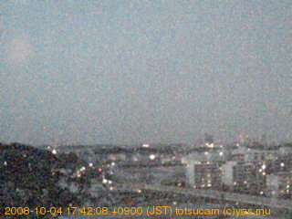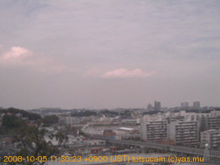 適度に曇った日の雲の動き (例: 2005-10-24) がとても楽しめます。 正面を横切っている高架は横須賀線下りです。 その下に横須賀線上り、東海道線、同貨物線が走っていますが、 高架に隠れていてよく見えません。 夜間は特に中央左寄りの車の動きがよく見えます。