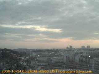 横浜市戸塚駅周辺から 東戸塚方面(北北東)を望む展望カメラの映像です。 左は現在の映像です。 下に並んでいるのは、 7日間に亘る日の出どき、昼間、夕暮れどきの写真(サムネイル)です。 それぞれ、日の出15分前、南中時、日没20分後の写真となっています。 各写真の下にはmpeg形式の動画へのリンクがあります。 それぞれ、日の出、南中、日没の前後1時間の画像です。 右欄にはその日24時間の動画へのリンクがあります。 この7日間以外は日付が一覧表示されています。 日付部分をクリックすると、 その日付から7日分が展開されて表示されます。