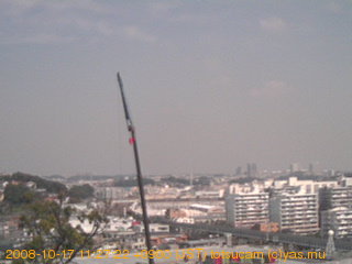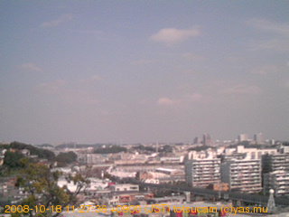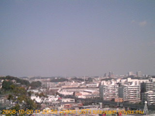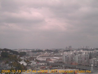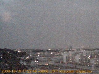 適度に曇った日の雲の動き (例: 2005-10-24) がとても楽しめます。 正面を横切っている高架は横須賀線下りです。 その下に横須賀線上り、東海道線、同貨物線が走っていますが、 高架に隠れていてよく見えません。 夜間は特に中央左寄りの車の動きがよく見えます。