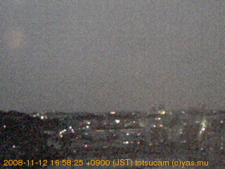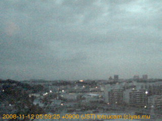 横浜市戸塚駅周辺から 東戸塚方面(北北東)を望む展望カメラの映像です。 左は現在の映像です。 下に並んでいるのは、 7日間に亘る日の出どき、昼間、夕暮れどきの写真(サムネイル)です。 それぞれ、日の出15分前、南中時、日没20分後の写真となっています。 各写真の下にはmpeg形式の動画へのリンクがあります。 それぞれ、日の出、南中、日没の前後1時間の画像です。 右欄にはその日24時間の動画へのリンクがあります。 この7日間以外は日付が一覧表示されています。 日付部分をクリックすると、 その日付から7日分が展開されて表示されます。