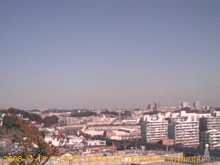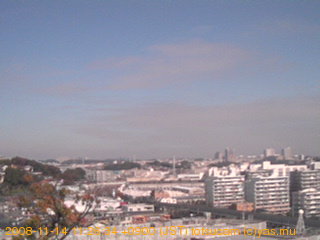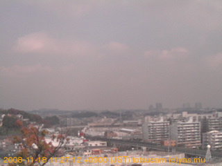 適度に曇った日の雲の動き (例: 2005-10-24) がとても楽しめます。 正面を横切っている高架は横須賀線下りです。 その下に横須賀線上り、東海道線、同貨物線が走っていますが、 高架に隠れていてよく見えません。 夜間は特に中央左寄りの車の動きがよく見えます。
