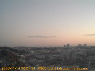 横浜市戸塚駅周辺から 東戸塚方面(北北東)を望む展望カメラの映像です。 左は現在の映像です。 下に並んでいるのは、 7日間に亘る日の出どき、昼間、夕暮れどきの写真(サムネイル)です。 それぞれ、日の出15分前、南中時、日没20分後の写真となっています。 各写真の下にはmpeg形式の動画へのリンクがあります。 それぞれ、日の出、南中、日没の前後1時間の画像です。 右欄にはその日24時間の動画へのリンクがあります。 この7日間以外は日付が一覧表示されています。 日付部分をクリックすると、 その日付から7日分が展開されて表示されます。