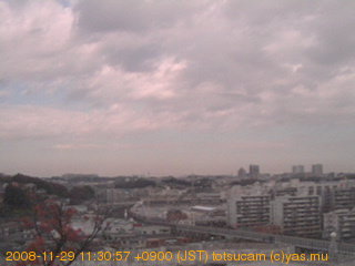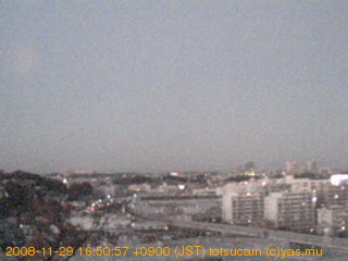適度に曇った日の雲の動き (例: 2005-10-24) がとても楽しめます。 正面を横切っている高架は横須賀線下りです。 その下に横須賀線上り、東海道線、同貨物線が走っていますが、 高架に隠れていてよく見えません。 夜間は特に中央左寄りの車の動きがよく見えます。