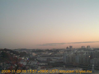 横浜市戸塚駅周辺から 東戸塚方面(北北東)を望む展望カメラの映像です。 左は現在の映像です。 下に並んでいるのは、 7日間に亘る日の出どき、昼間、夕暮れどきの写真(サムネイル)です。 それぞれ、日の出15分前、南中時、日没20分後の写真となっています。 各写真の下にはmpeg形式の動画へのリンクがあります。 それぞれ、日の出、南中、日没の前後1時間の画像です。 右欄にはその日24時間の動画へのリンクがあります。 この7日間以外は日付が一覧表示されています。 日付部分をクリックすると、 その日付から7日分が展開されて表示されます。