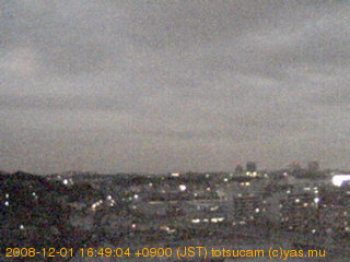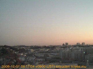 横浜市戸塚駅周辺から 東戸塚方面(北北東)を望む展望カメラの映像です。 左は現在の映像です。 下に並んでいるのは、 7日間に亘る日の出どき、昼間、夕暮れどきの写真(サムネイル)です。 それぞれ、日の出15分前、南中時、日没20分後の写真となっています。 各写真の下にはmpeg形式の動画へのリンクがあります。 それぞれ、日の出、南中、日没の前後1時間の画像です。 右欄にはその日24時間の動画へのリンクがあります。 この7日間以外は日付が一覧表示されています。 日付部分をクリックすると、 その日付から7日分が展開されて表示されます。