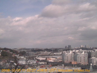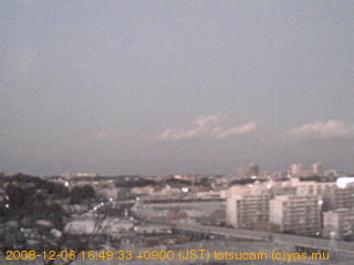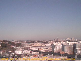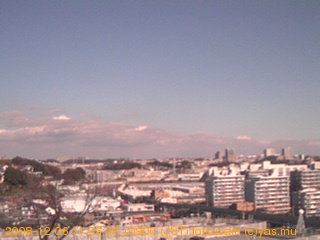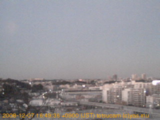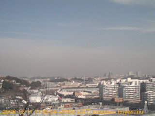 適度に曇った日の雲の動き (例: 2005-10-24) がとても楽しめます。 正面を横切っている高架は横須賀線下りです。 その下に横須賀線上り、東海道線、同貨物線が走っていますが、 高架に隠れていてよく見えません。 夜間は特に中央左寄りの車の動きがよく見えます。