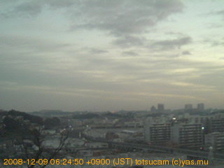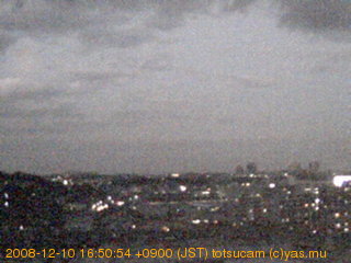 横浜市戸塚駅周辺から 東戸塚方面(北北東)を望む展望カメラの映像です。 左は現在の映像です。 下に並んでいるのは、 7日間に亘る日の出どき、昼間、夕暮れどきの写真(サムネイル)です。 それぞれ、日の出15分前、南中時、日没20分後の写真となっています。 各写真の下にはmpeg形式の動画へのリンクがあります。 それぞれ、日の出、南中、日没の前後1時間の画像です。 右欄にはその日24時間の動画へのリンクがあります。 この7日間以外は日付が一覧表示されています。 日付部分をクリックすると、 その日付から7日分が展開されて表示されます。