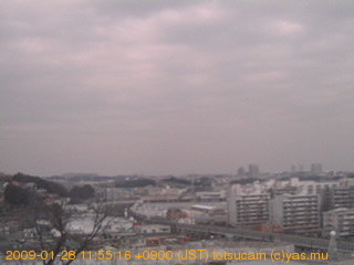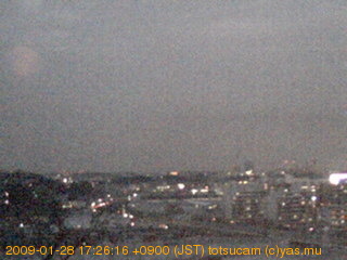 適度に曇った日の雲の動き (例: 2005-10-24) がとても楽しめます。 正面を横切っている高架は横須賀線下りです。 その下に横須賀線上り、東海道線、同貨物線が走っていますが、 高架に隠れていてよく見えません。 夜間は特に中央左寄りの車の動きがよく見えます。