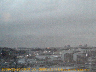 横浜市戸塚駅周辺から 東戸塚方面(北北東)を望む展望カメラの映像です。 左は現在の映像です。 下に並んでいるのは、 7日間に亘る日の出どき、昼間、夕暮れどきの写真(サムネイル)です。 それぞれ、日の出15分前、南中時、日没20分後の写真となっています。 各写真の下にはmpeg形式の動画へのリンクがあります。 それぞれ、日の出、南中、日没の前後1時間の画像です。 右欄にはその日24時間の動画へのリンクがあります。 この7日間以外は日付が一覧表示されています。 日付部分をクリックすると、 その日付から7日分が展開されて表示されます。