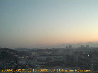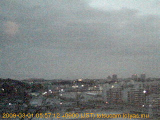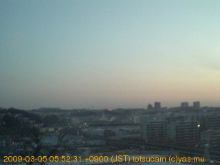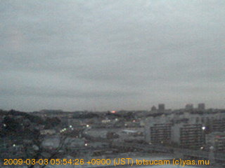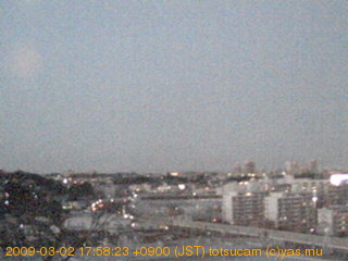 横浜市戸塚駅周辺から 東戸塚方面(北北東)を望む展望カメラの映像です。 左は現在の映像です。 下に並んでいるのは、 7日間に亘る日の出どき、昼間、夕暮れどきの写真(サムネイル)です。 それぞれ、日の出15分前、南中時、日没20分後の写真となっています。 各写真の下にはmpeg形式の動画へのリンクがあります。 それぞれ、日の出、南中、日没の前後1時間の画像です。 右欄にはその日24時間の動画へのリンクがあります。 この7日間以外は日付が一覧表示されています。 日付部分をクリックすると、 その日付から7日分が展開されて表示されます。