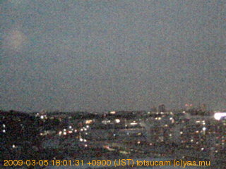 適度に曇った日の雲の動き (例: 2005-10-24) がとても楽しめます。 正面を横切っている高架は横須賀線下りです。 その下に横須賀線上り、東海道線、同貨物線が走っていますが、 高架に隠れていてよく見えません。 夜間は特に中央左寄りの車の動きがよく見えます。