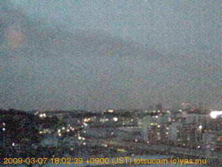 適度に曇った日の雲の動き (例: 2005-10-24) がとても楽しめます。 正面を横切っている高架は横須賀線下りです。 その下に横須賀線上り、東海道線、同貨物線が走っていますが、 高架に隠れていてよく見えません。 夜間は特に中央左寄りの車の動きがよく見えます。