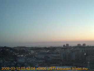 横浜市戸塚駅周辺から 東戸塚方面(北北東)を望む展望カメラの映像です。 左は現在の映像です。 下に並んでいるのは、 7日間に亘る日の出どき、昼間、夕暮れどきの写真(サムネイル)です。 それぞれ、日の出15分前、南中時、日没20分後の写真となっています。 各写真の下にはmpeg形式の動画へのリンクがあります。 それぞれ、日の出、南中、日没の前後1時間の画像です。 右欄にはその日24時間の動画へのリンクがあります。 この7日間以外は日付が一覧表示されています。 日付部分をクリックすると、 その日付から7日分が展開されて表示されます。