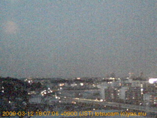適度に曇った日の雲の動き (例: 2005-10-24) がとても楽しめます。 正面を横切っている高架は横須賀線下りです。 その下に横須賀線上り、東海道線、同貨物線が走っていますが、 高架に隠れていてよく見えません。 夜間は特に中央左寄りの車の動きがよく見えます。
