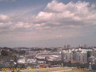 適度に曇った日の雲の動き (例: 2005-10-24) がとても楽しめます。 正面を横切っている高架は横須賀線下りです。 その下に横須賀線上り、東海道線、同貨物線が走っていますが、 高架に隠れていてよく見えません。 夜間は特に中央左寄りの車の動きがよく見えます。