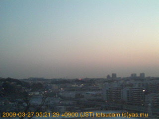 横浜市戸塚駅周辺から 東戸塚方面(北北東)を望む展望カメラの映像です。 左は現在の映像です。 下に並んでいるのは、 7日間に亘る日の出どき、昼間、夕暮れどきの写真(サムネイル)です。 それぞれ、日の出15分前、南中時、日没20分後の写真となっています。 各写真の下にはmpeg形式の動画へのリンクがあります。 それぞれ、日の出、南中、日没の前後1時間の画像です。 右欄にはその日24時間の動画へのリンクがあります。 この7日間以外は日付が一覧表示されています。 日付部分をクリックすると、 その日付から7日分が展開されて表示されます。