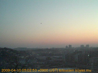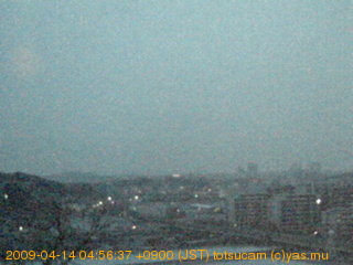 横浜市戸塚駅周辺から 東戸塚方面(北北東)を望む展望カメラの映像です。 左は現在の映像です。 下に並んでいるのは、 7日間に亘る日の出どき、昼間、夕暮れどきの写真(サムネイル)です。 それぞれ、日の出15分前、南中時、日没20分後の写真となっています。 各写真の下にはmpeg形式の動画へのリンクがあります。 それぞれ、日の出、南中、日没の前後1時間の画像です。 右欄にはその日24時間の動画へのリンクがあります。 この7日間以外は日付が一覧表示されています。 日付部分をクリックすると、 その日付から7日分が展開されて表示されます。