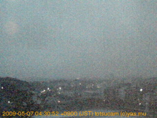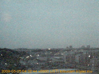 横浜市戸塚駅周辺から 東戸塚方面(北北東)を望む展望カメラの映像です。 左は現在の映像です。 下に並んでいるのは、 7日間に亘る日の出どき、昼間、夕暮れどきの写真(サムネイル)です。 それぞれ、日の出15分前、南中時、日没20分後の写真となっています。 各写真の下にはmpeg形式の動画へのリンクがあります。 それぞれ、日の出、南中、日没の前後1時間の画像です。 右欄にはその日24時間の動画へのリンクがあります。 この7日間以外は日付が一覧表示されています。 日付部分をクリックすると、 その日付から7日分が展開されて表示されます。