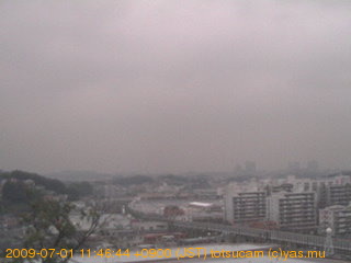 適度に曇った日の雲の動き (例: 2005-10-24) がとても楽しめます。 正面を横切っている高架は横須賀線下りです。 その下に横須賀線上り、東海道線、同貨物線が走っていますが、 高架に隠れていてよく見えません。 夜間は特に中央左寄りの車の動きがよく見えます。