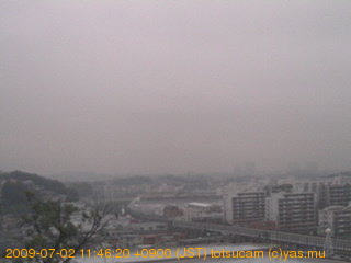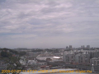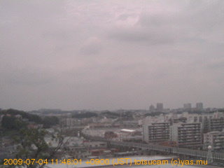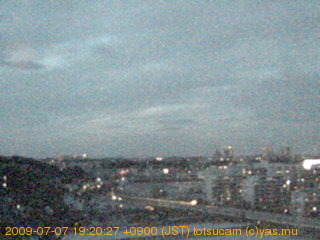 適度に曇った日の雲の動き (例: 2005-10-24) がとても楽しめます。 正面を横切っている高架は横須賀線下りです。 その下に横須賀線上り、東海道線、同貨物線が走っていますが、 高架に隠れていてよく見えません。 夜間は特に中央左寄りの車の動きがよく見えます。