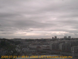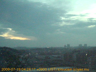 横浜市戸塚駅周辺から 東戸塚方面(北北東)を望む展望カメラの映像です。 左は現在の映像です。 下に並んでいるのは、 7日間に亘る日の出どき、昼間、夕暮れどきの写真(サムネイル)です。 それぞれ、日の出15分前、南中時、日没20分後の写真となっています。 各写真の下にはmpeg形式の動画へのリンクがあります。 それぞれ、日の出、南中、日没の前後1時間の画像です。 右欄にはその日24時間の動画へのリンクがあります。 この7日間以外は日付が一覧表示されています。 日付部分をクリックすると、 その日付から7日分が展開されて表示されます。