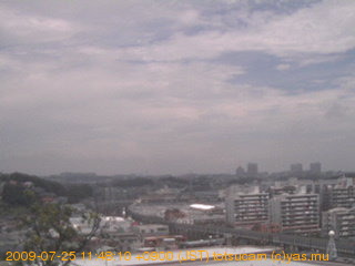 適度に曇った日の雲の動き (例: 2005-10-24) がとても楽しめます。 正面を横切っている高架は横須賀線下りです。 その下に横須賀線上り、東海道線、同貨物線が走っていますが、 高架に隠れていてよく見えません。 夜間は特に中央左寄りの車の動きがよく見えます。