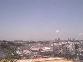 適度に曇った日の雲の動き (例: 2005-10-24) がとても楽しめます。 正面を横切っている高架は横須賀線下りです。 その下に横須賀線上り、東海道線、同貨物線が走っていますが、 高架に隠れていてよく見えません。 夜間は特に中央左寄りの車の動きがよく見えます。